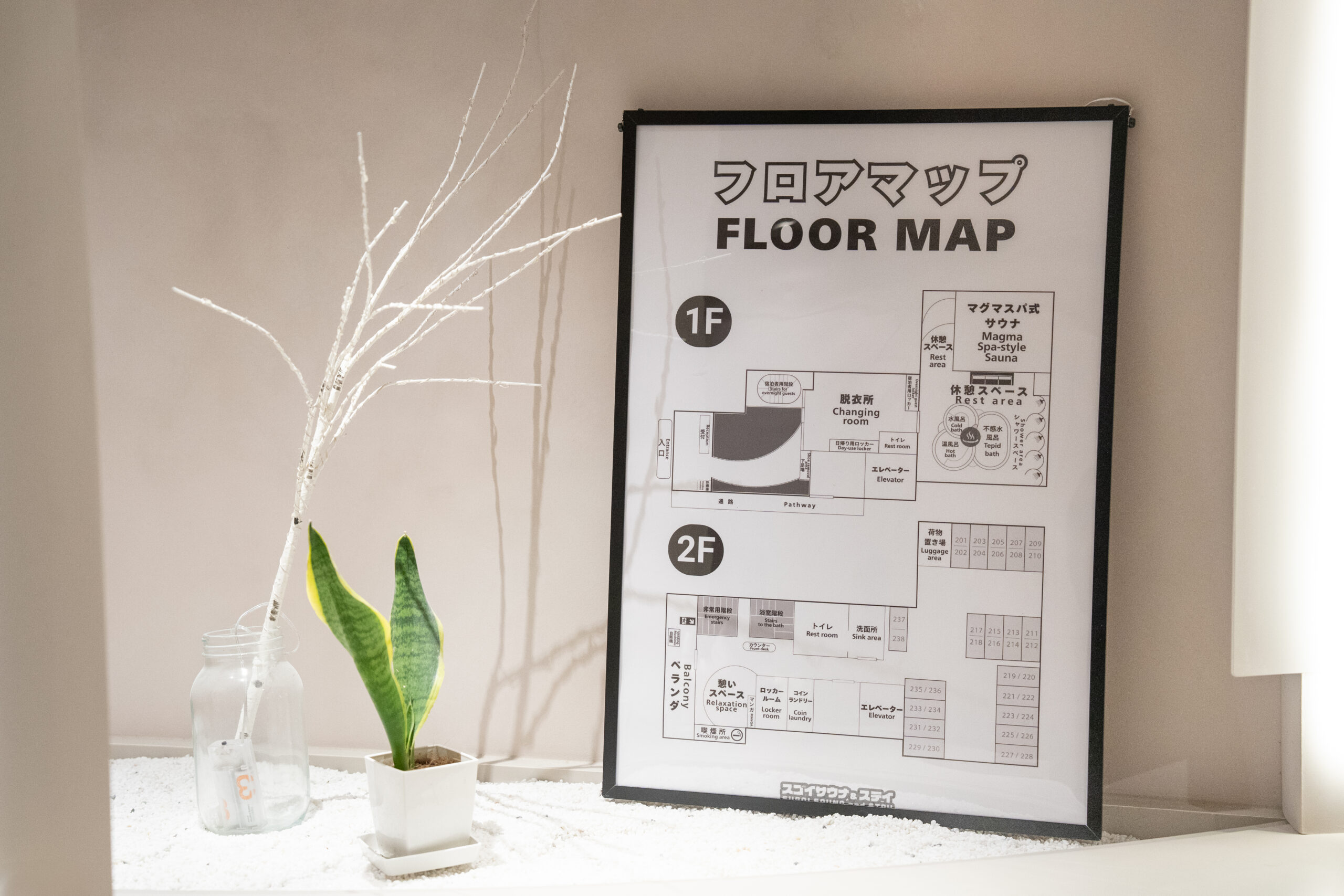 2階休憩スペースをご利用する際は服を着てからお上がりください。
